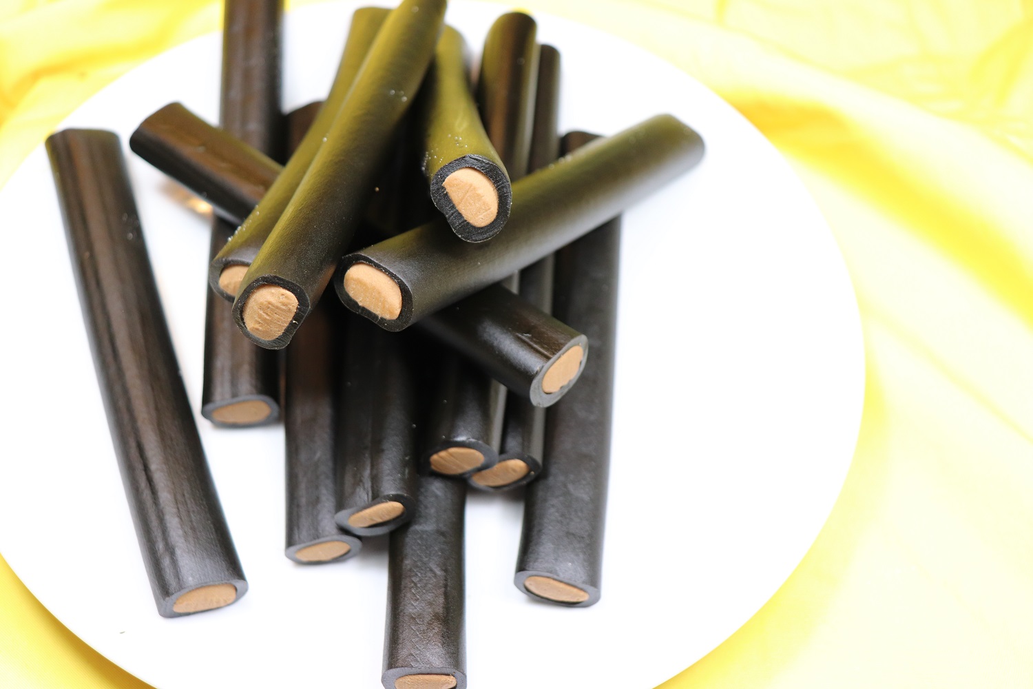 Gelatine, Fettreduziertes Kakaopulver, Süßholzextrakt,